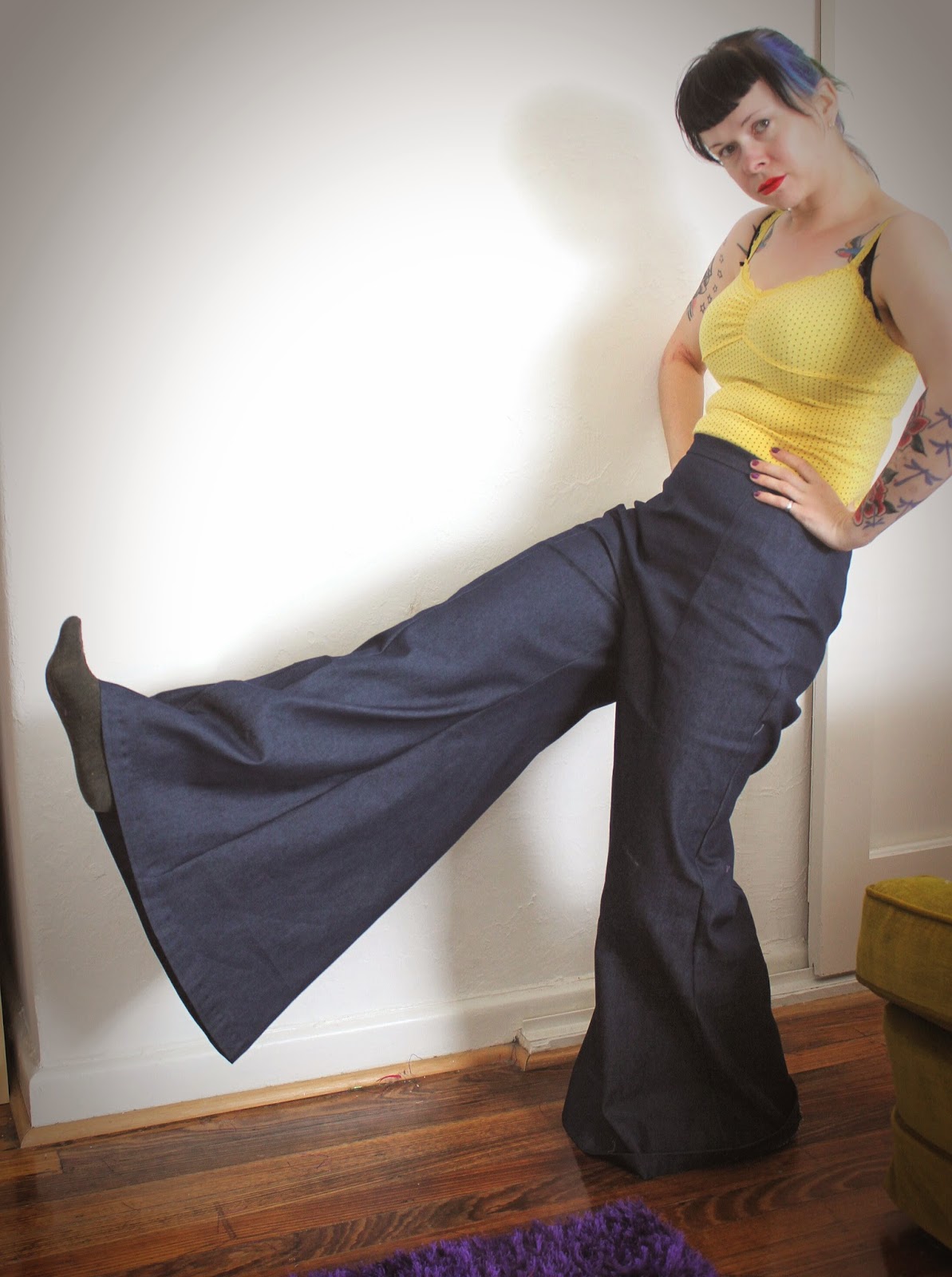 Now, would you look at these silly pants? They are just so small, it's ridiculous. You would think, in 1969, that they knew how to design a flared pants pattern.